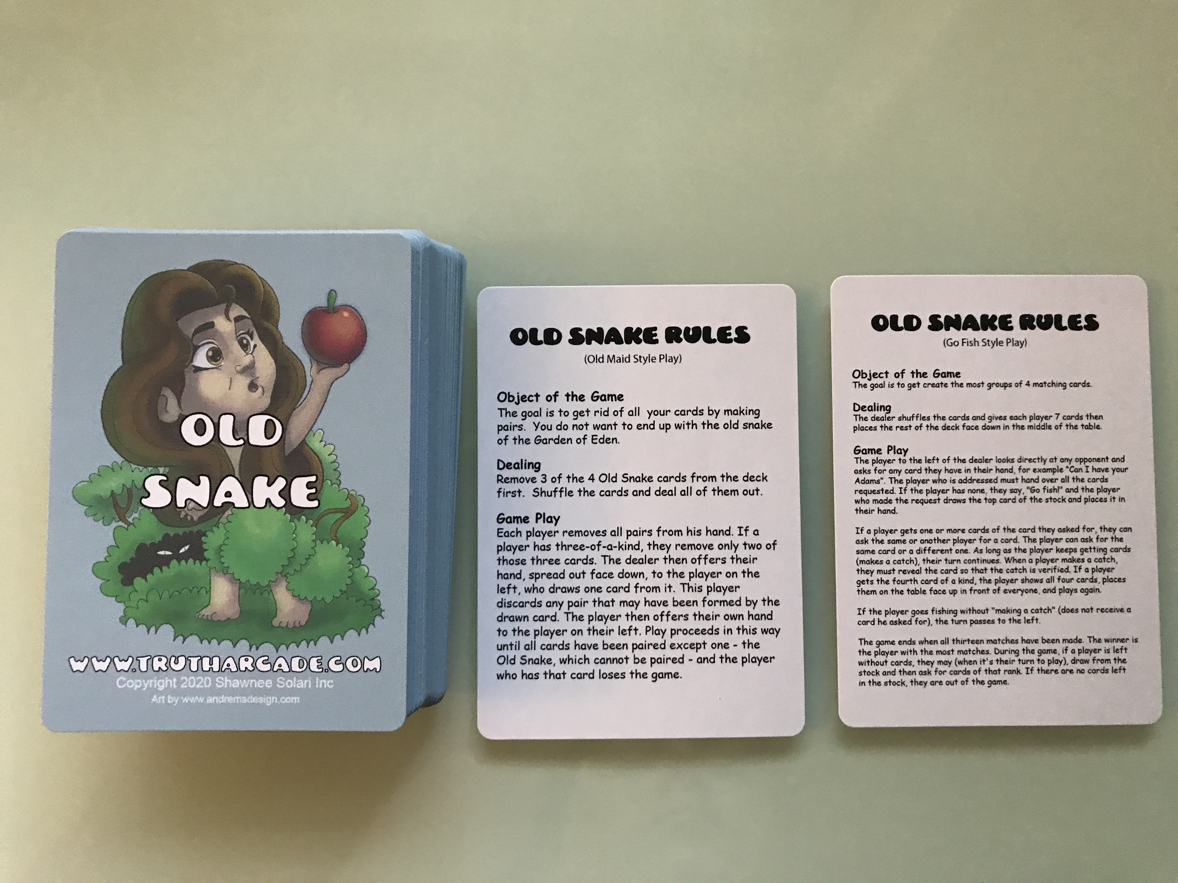 As part of our initial concept to create a biblical game we had the idea to also have board games. We thought about our own children and how we would entertain them while also allowing them to learn about the bible. That is when we decided we would build children's card/board games. Since we are expecting our newest addition at the beginning of October 2020, we decided to start with a 1-5 age range matching card game for him and for the 10 and 7 year old we thought an Old Maid/Go Fish style game would be fun. We have several ideas on how to make the game more challenging and educational while still making it fun.